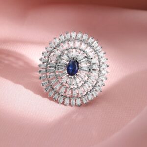 Rhodium Plated AD Stone Studded with blue StoneFinger Ring – Blue