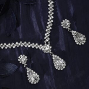 Rhodium-Plated Crystal-Studded Jewellery Set – Silver