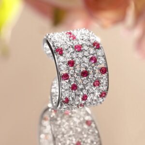 Rhodium-Plated Adjustable Wide Band Ring with Ruby Red & White Cubic Zirconia Stones