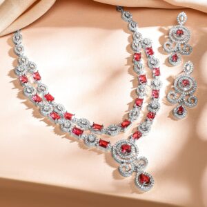 Rhodium-Plated Ruby Pink & White Cubic Zirconia Double Layer Luxe Jewellery Set – Ruby Pink
