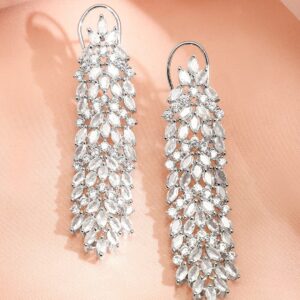 Silver-Plated AAA Cubic Zirconia Studded Premium Long Drop Earrings – Silver